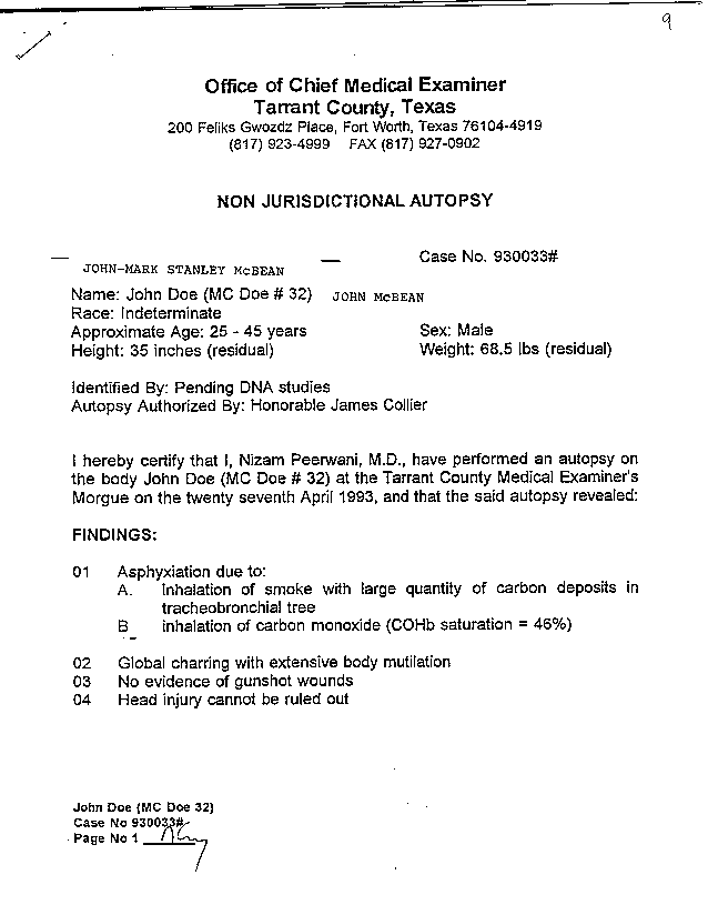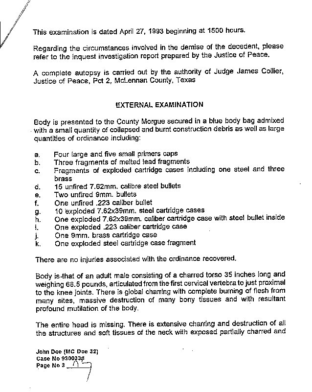 Autopsy Report of Mt. Carmel Doe 32