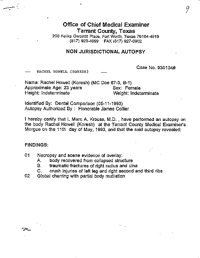 Remember, since ancient times, inquiries into questionable deaths have started with the bodies of the victims. If your news source won't give you an honest and full account of the forensic information on Waco, or if it does not have a link to the Waco Holocaust Electronic Museum ... your alternate news has failed a fundamental acid test.