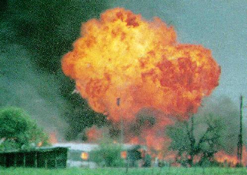 Military experts say that this explosive phenomena is characteristic of Special Operations demolitions, effected by detonating 55-gallon drums of jet fuel. When the Justice Department issued its report on Waco some years ago, the text on the fire did not even mention this fireball. (see section "The Fire," pgs.. 295 304). Such an oversight. Isn't that curious?